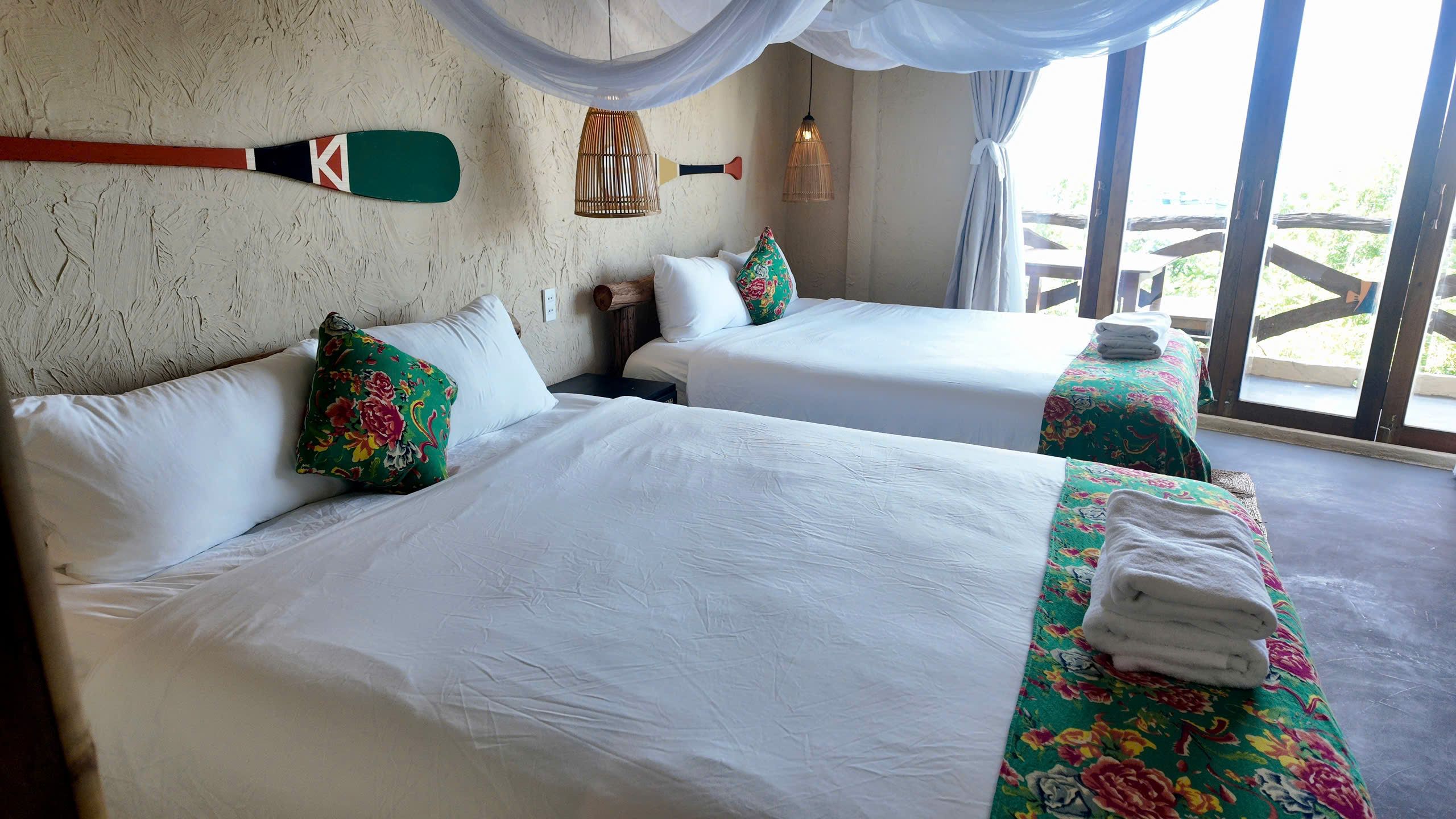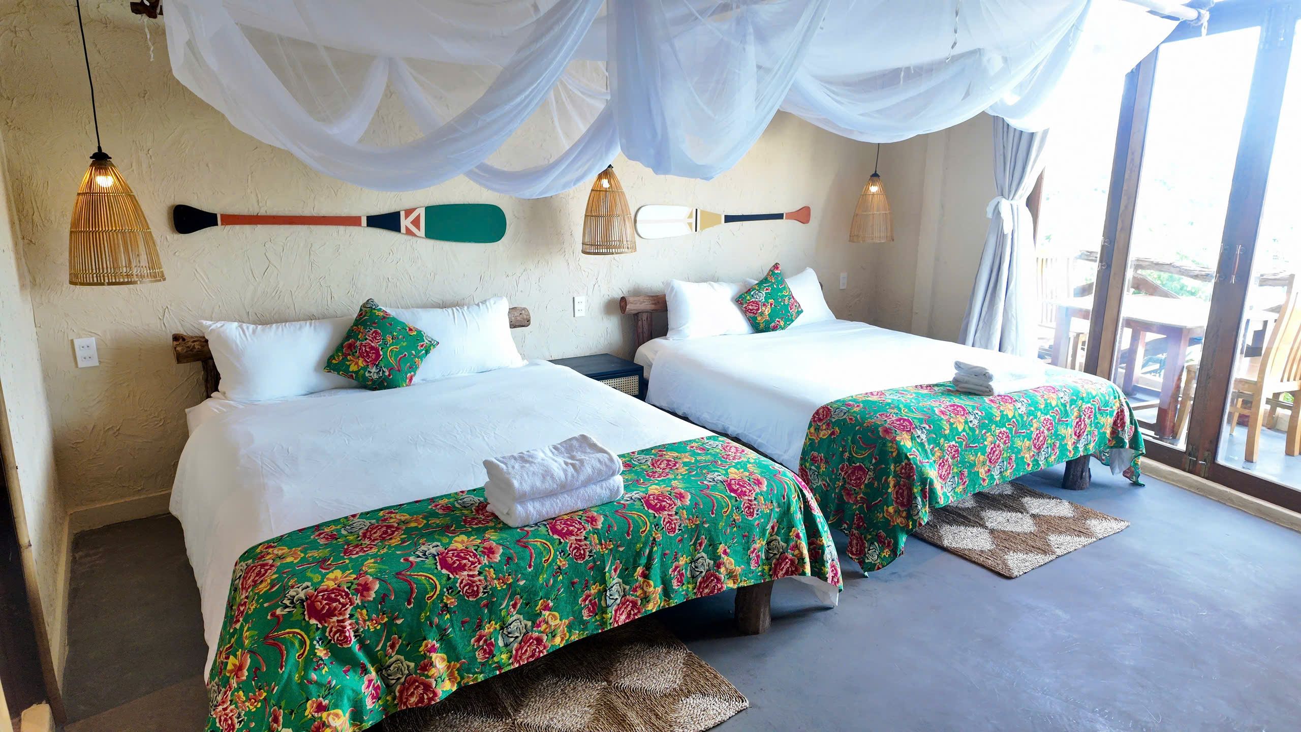 2 giường, có ban công view biển